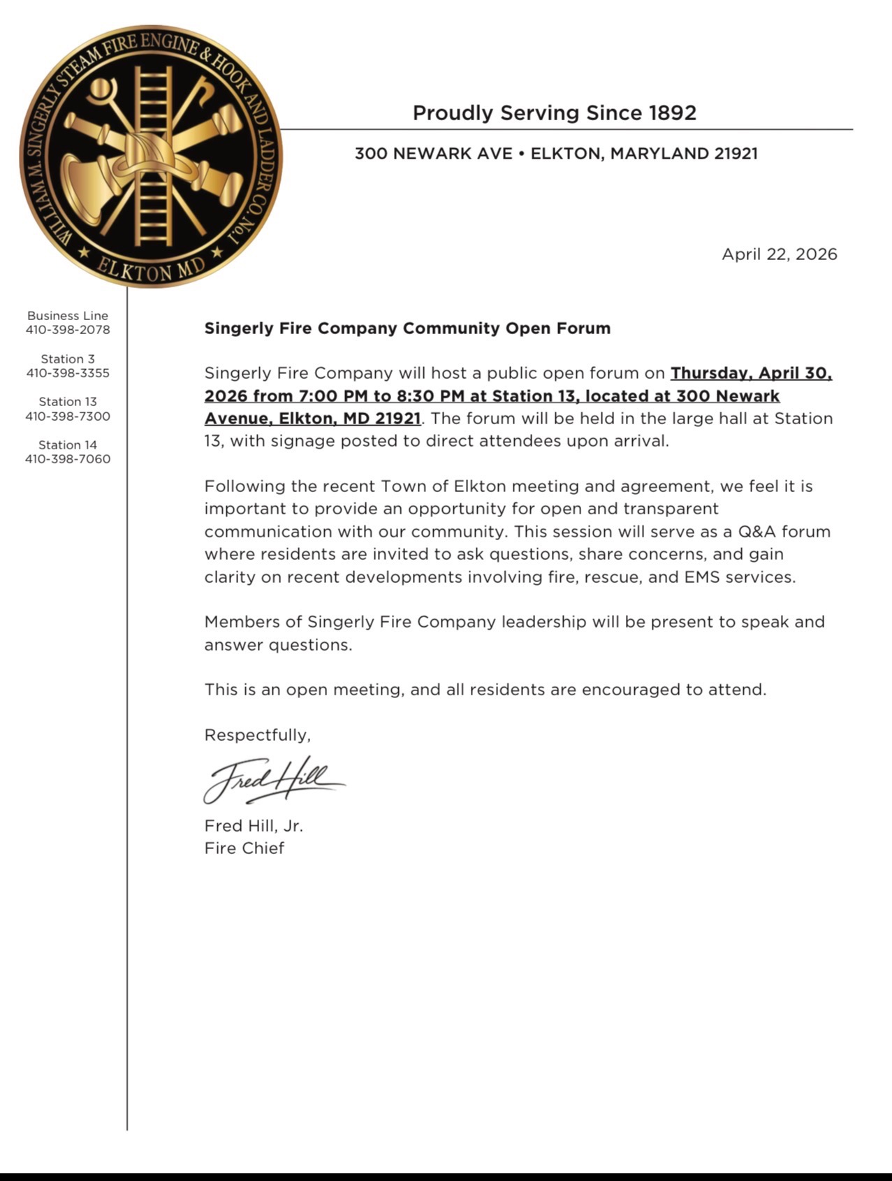 Singerly Fire Company Community Open Forum